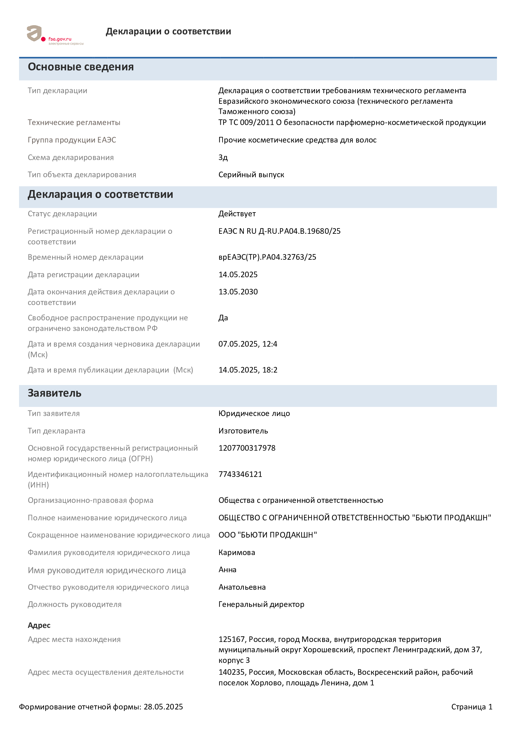 Срок годности маски для восстановления волос: 3 года с даты изготовления.